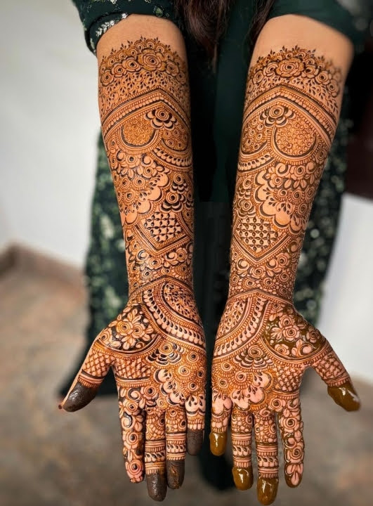 The dark henna stain enhances every tiny detail, giving the design a luxurious and eye-catching appearance.