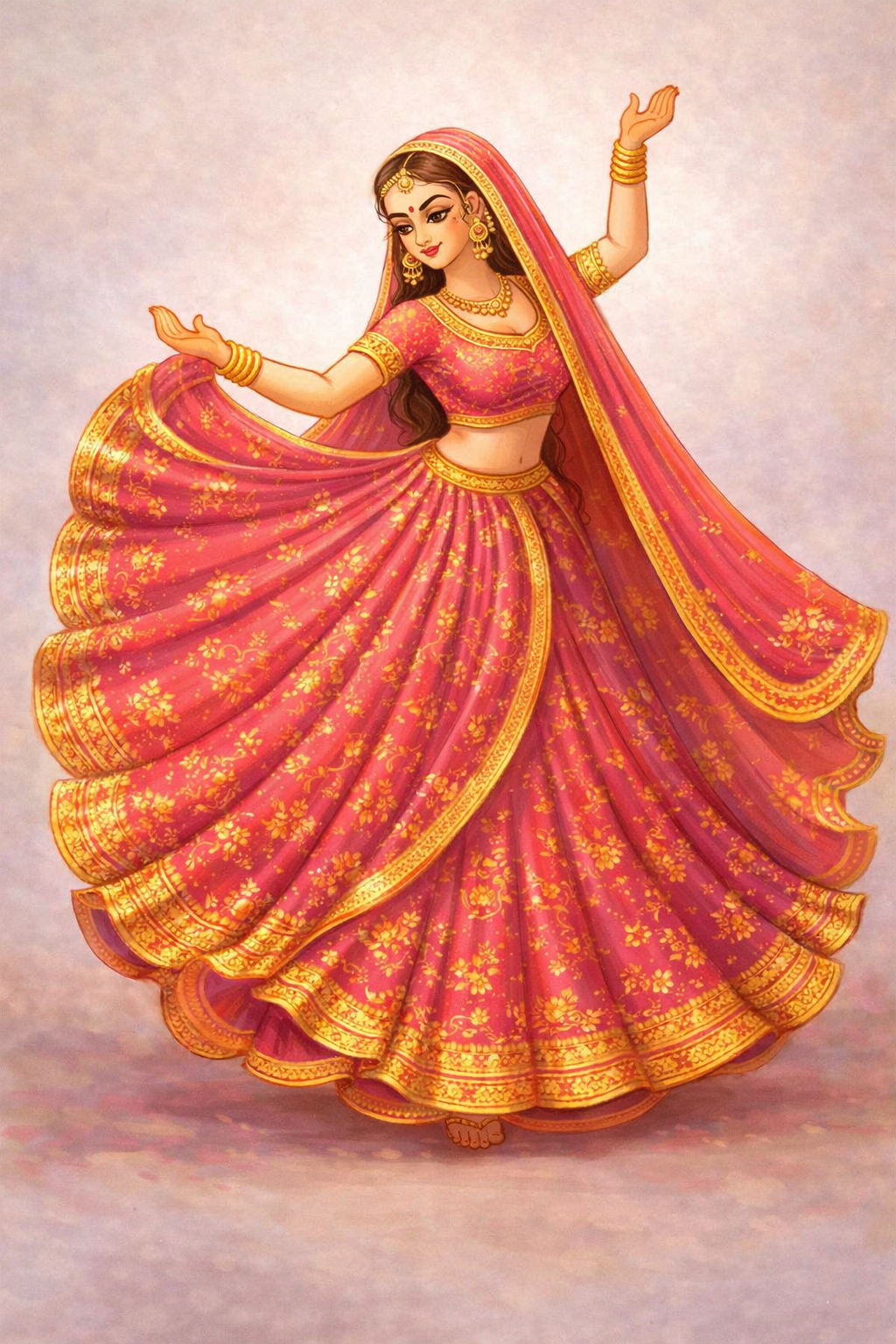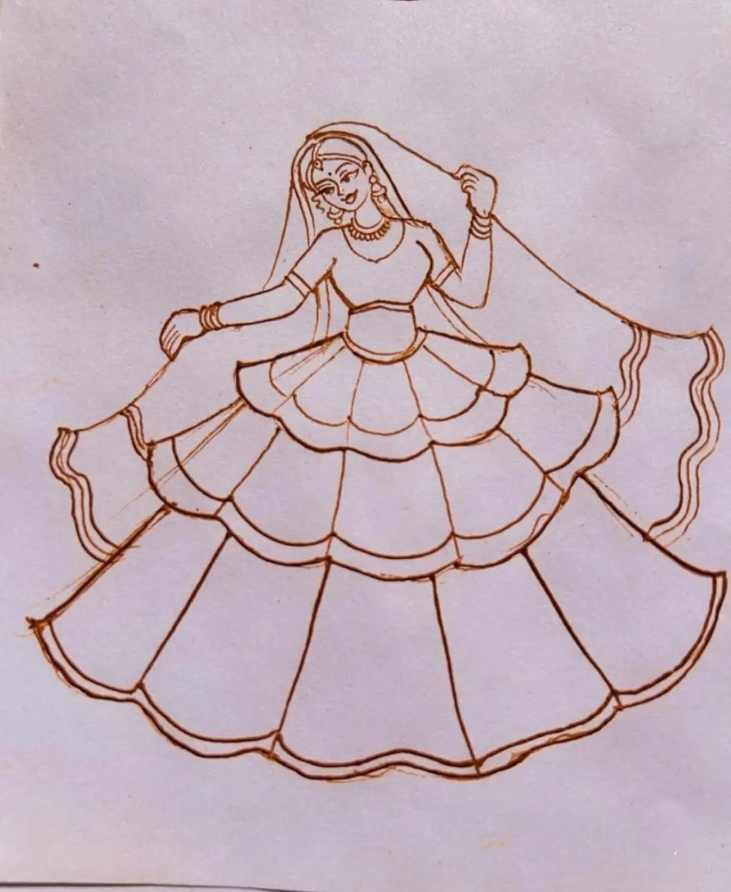 Her flowing dress and elegant hand movements create a sense of motion and celebration. The design reflects the beauty of RAJASTHANI culture and festive dance traditions. 💃✨